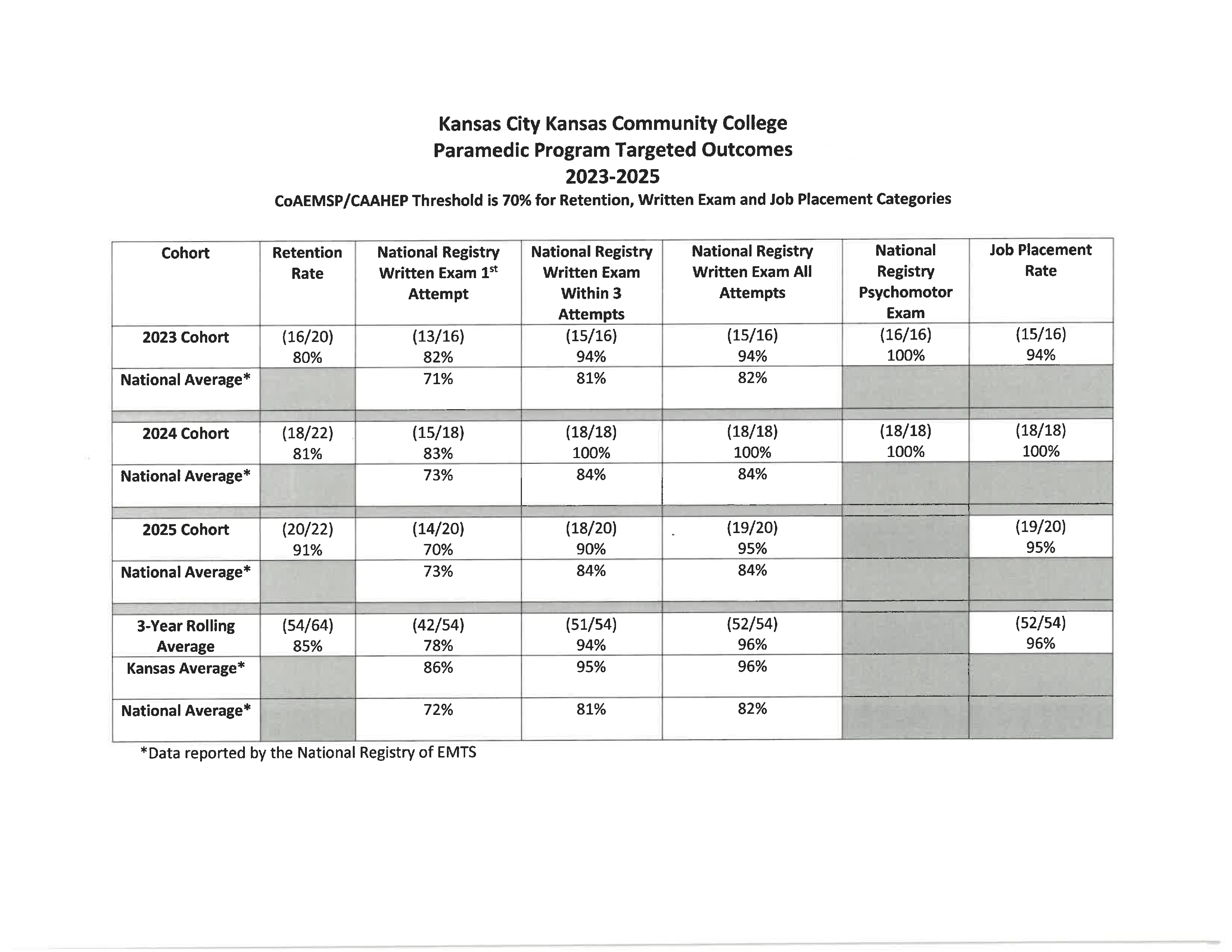 The Kansas City Kansas Community College Paramedic program is accredited by the Commission on Accreditation of Allied Health Education Programs (CAAHEP) upon the recommendation of the Committee on Accreditation of Educational Programs for the Emergency Medical Services Professions (CoAEMSP).