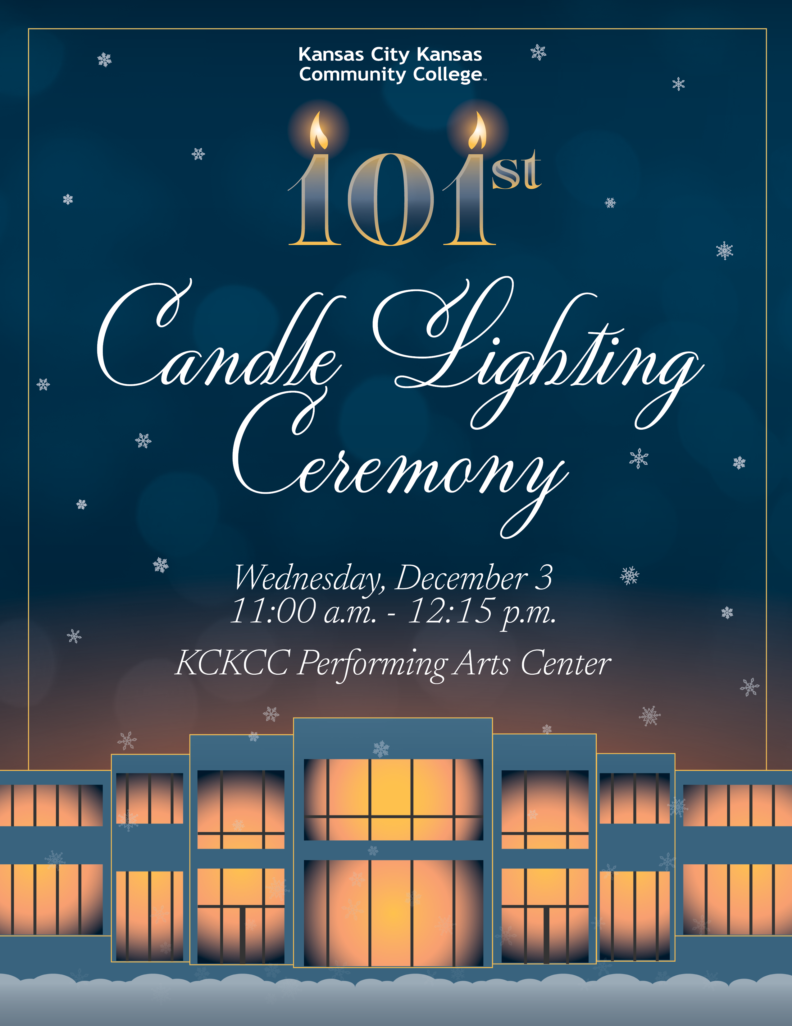 Join KCKCC in this celebration to start the holiday season on Wednesday, December 3 at 11 a.m. in the Performing Arts Center.